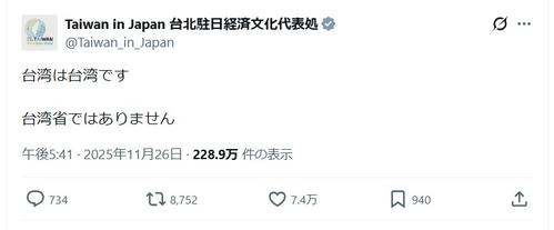 「台湾は台湾です。台湾省ではありません」台湾駐日外交窓口が投稿 駐日中国大使... -