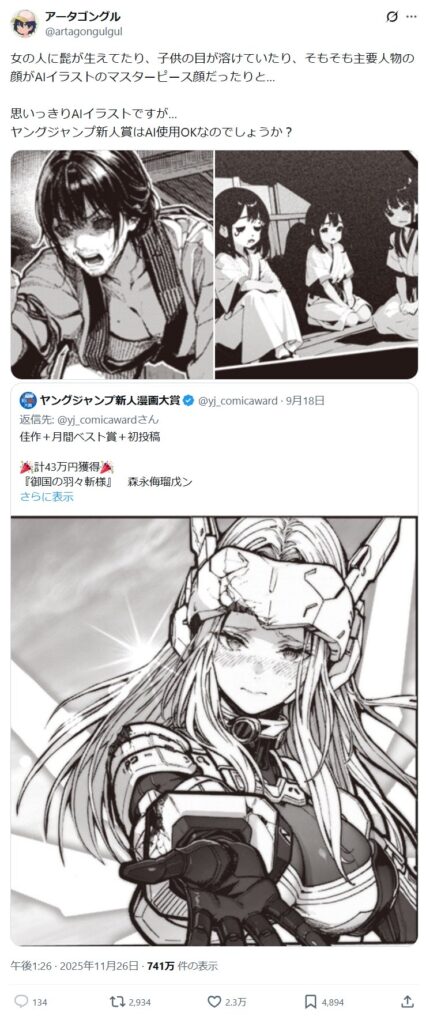 マンガの新人賞、AIが紛れてとんでもないことになるw 1: それでも動く名無し 2025... -