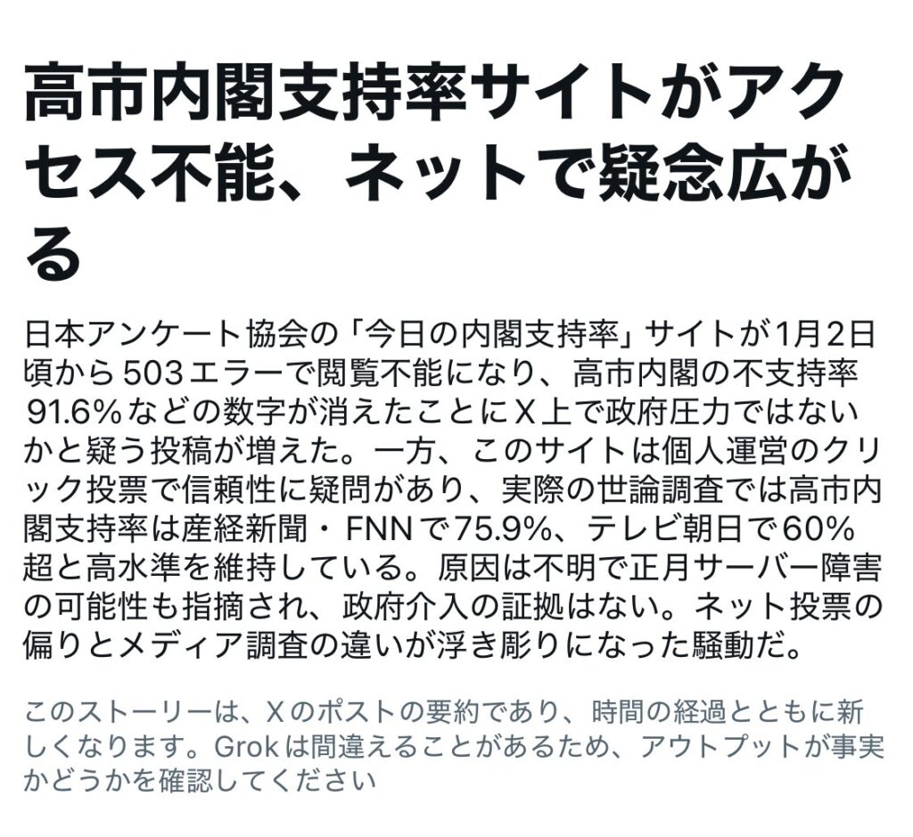実際の高市支持率が7%で不支持92%と暴いた老舗アンケートHP、何者かによって破壊さ... -