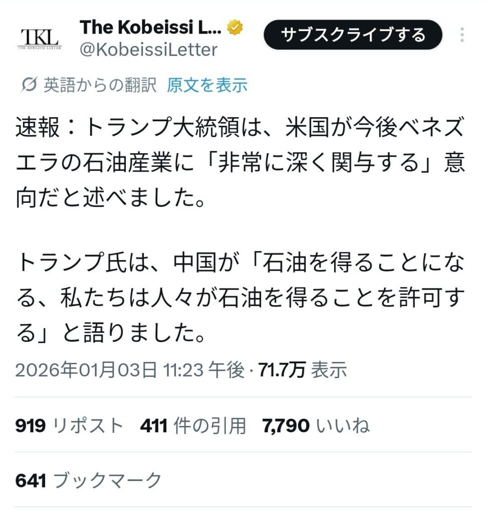 日本人「マドゥロ拘束は中国に対する警告!」 →トランプ「中国はベネズエラから石油を獲続ける」