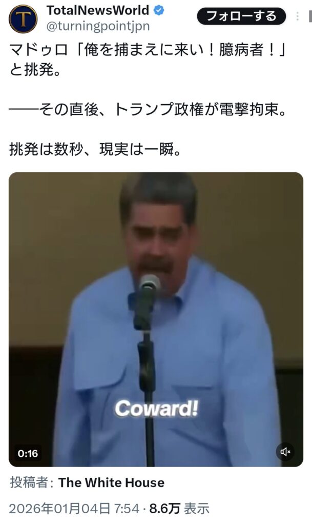 日本人「マドゥロ拘束は中国に対する警告!」 →トランプ「中国はベネズエラから石... -