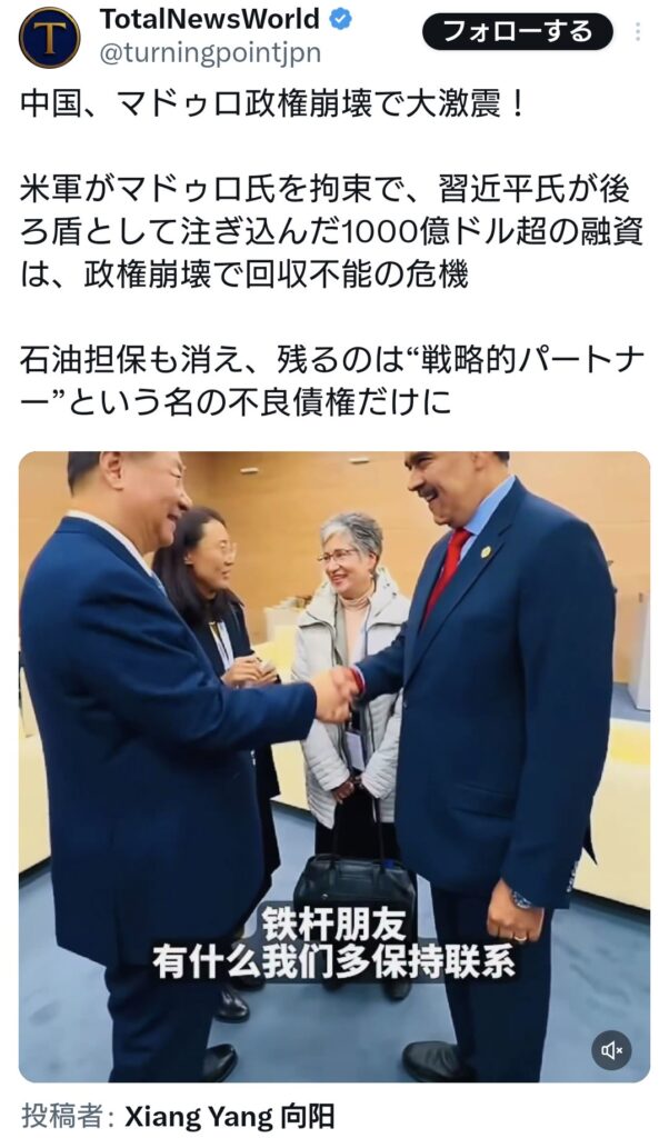 中国、マドゥロ政権崩壊で大激震!1000億ドル超の融資、回収不能の危機 1: マスク... -