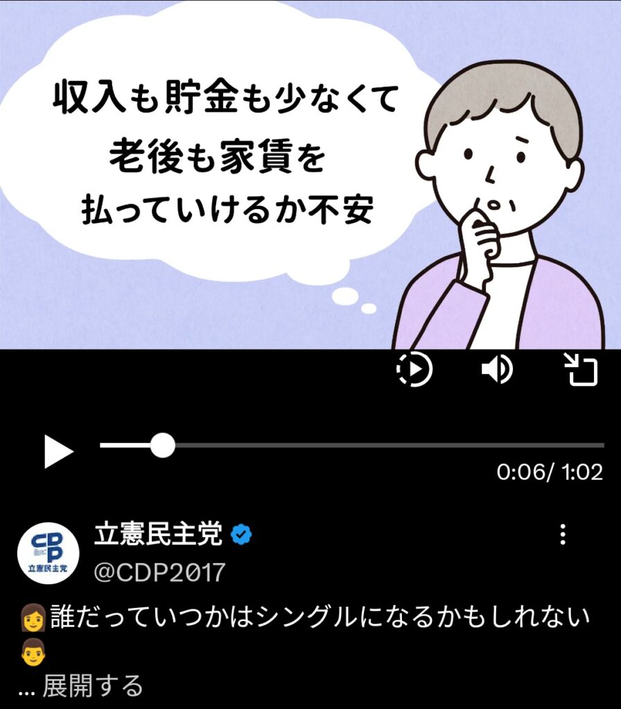 立憲民主党(公式) 「おひとり様の問題はみんなの問題だから!国をあげて支援して行きます!!」