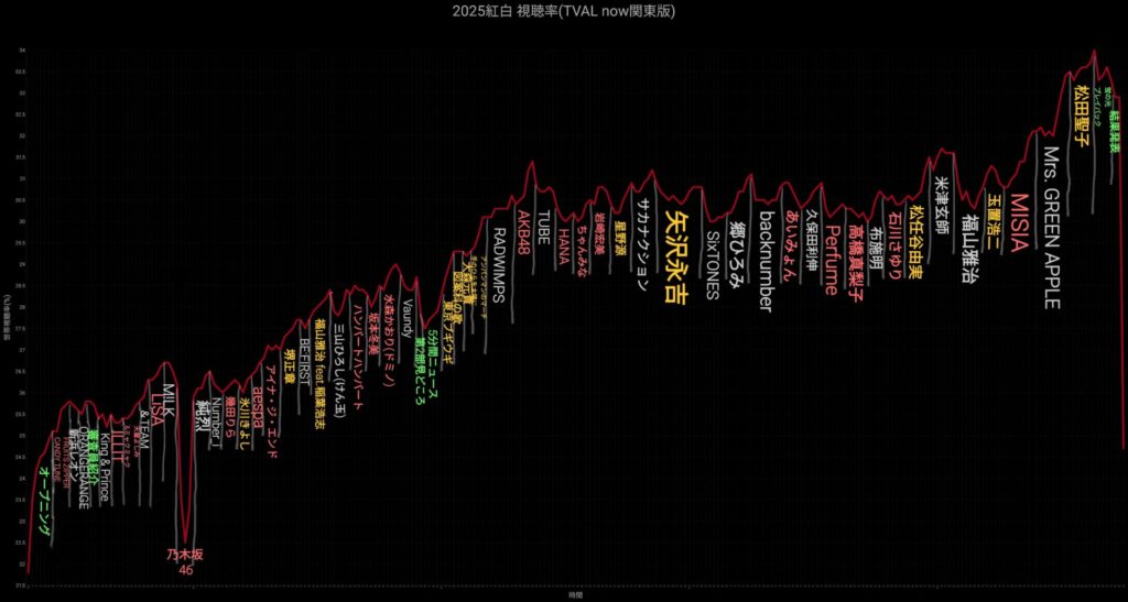 【画像】紅白の歌手別視聴率で恐慌が起きてるんだけど 1: それでも動く名無し 2026... -