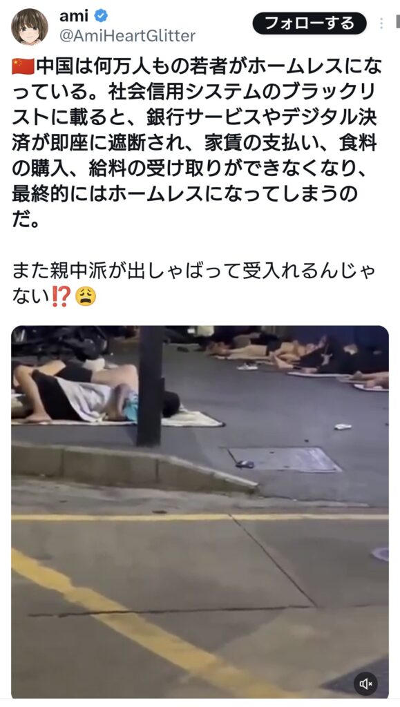 中国では何万人もの若者がホームレスに 1: ミスターJ(東京都) [US] 2025/12/31(水)... -