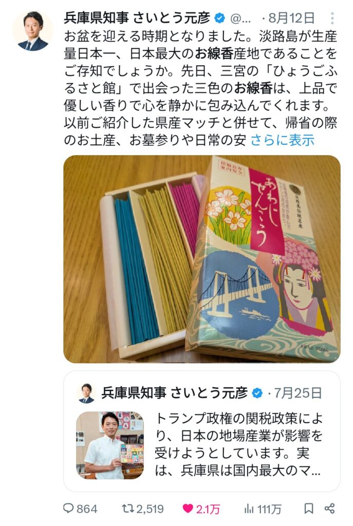 兵庫県斎藤知事、地元業者の引っ張りだこに「知事がXにupしたら例年の6倍売れた」 ... -
