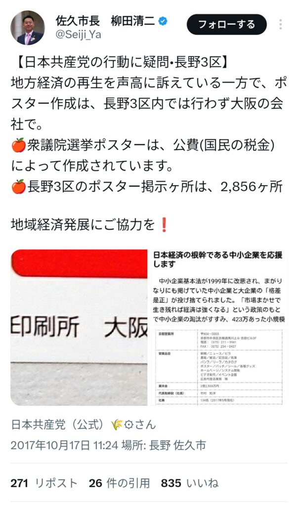 日本共産党さん、議員の父が役員を務める印刷会社で選挙ポスターなどあらゆるもの... -