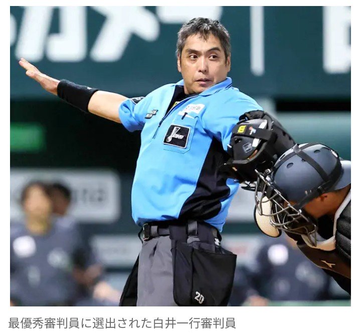 【野球】NPB『最優秀審判賞』 白井一行審判員が受賞! 受賞理由「判定技術、正確... -