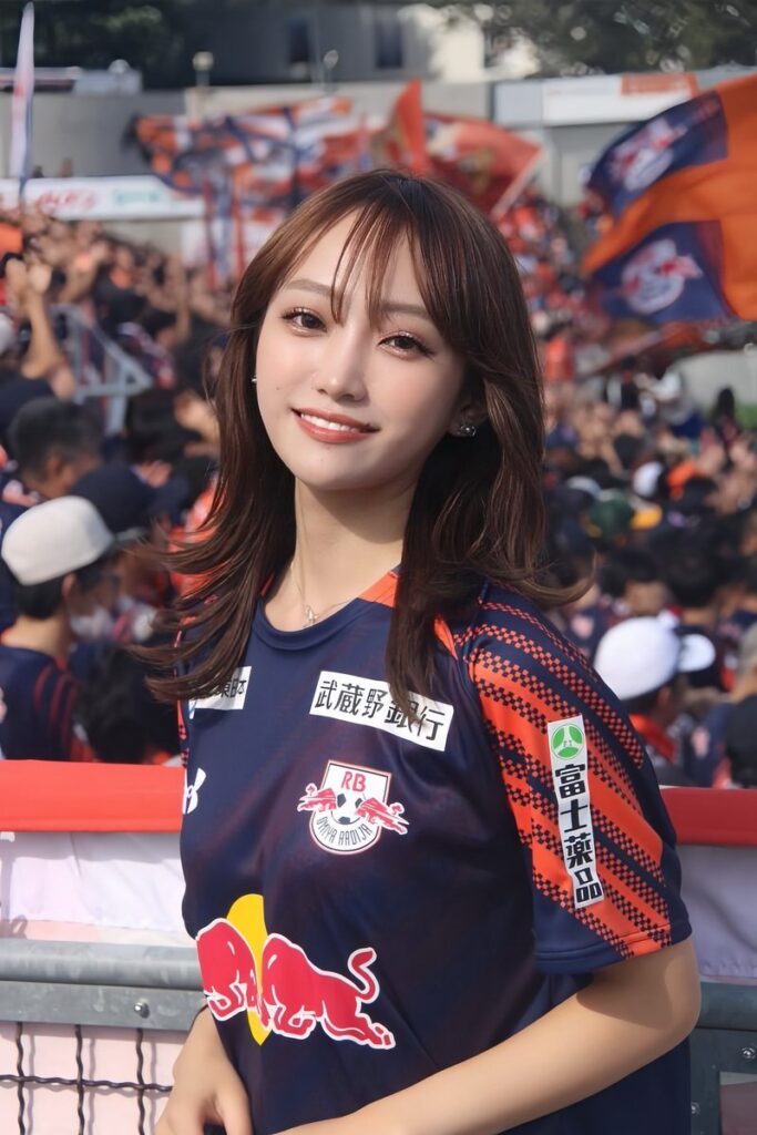 【サッカー】「とんでも美女サポ」「セクシー」「AIかと」大宮のユニフォームを着... -