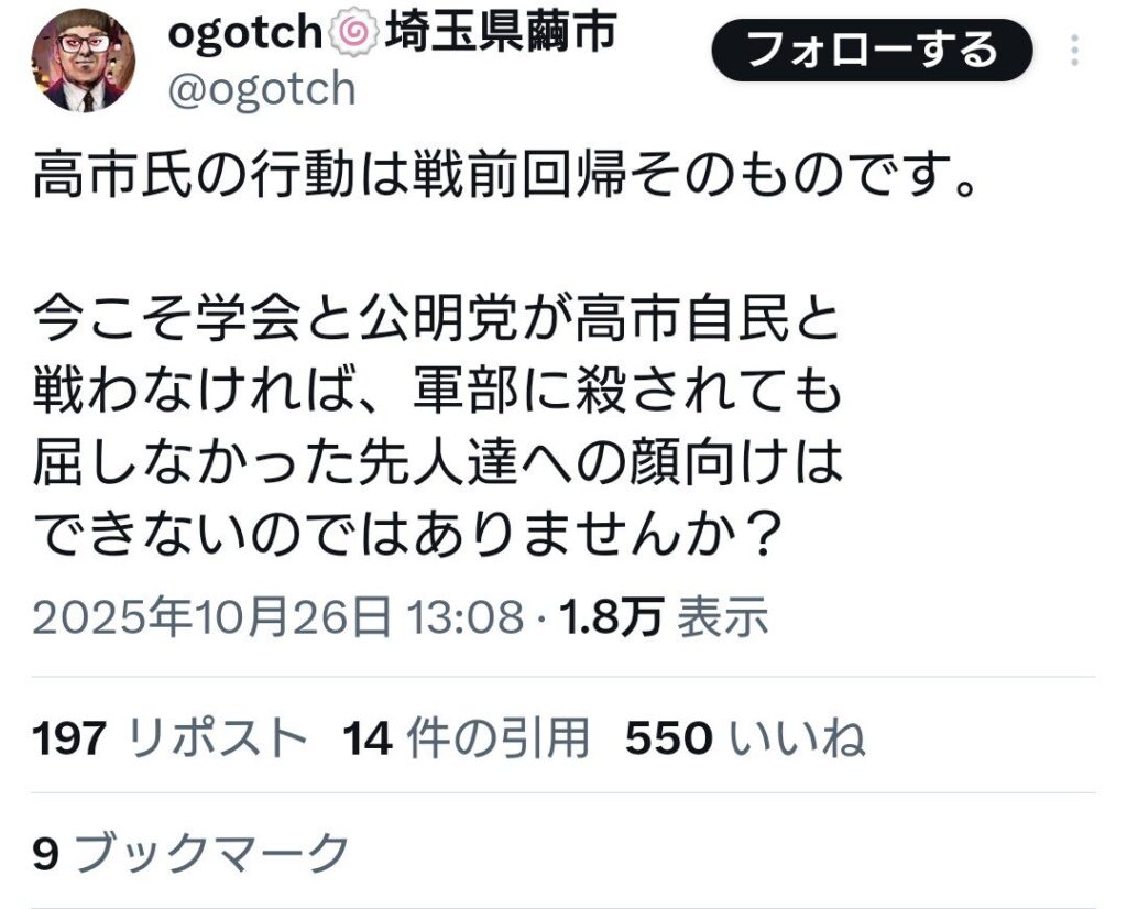 パさん「高市氏の行動は戦前回帰そのものです。」 →? 1: ウンピョウ(東京都) [AU]... -