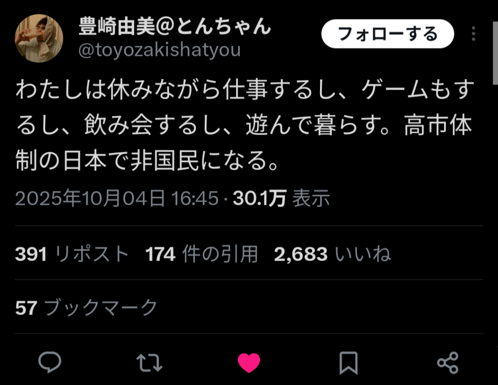 豊崎由美「私はこれからも仕事をして休みもとり遊びます。たとえ高市から非国民と... -
