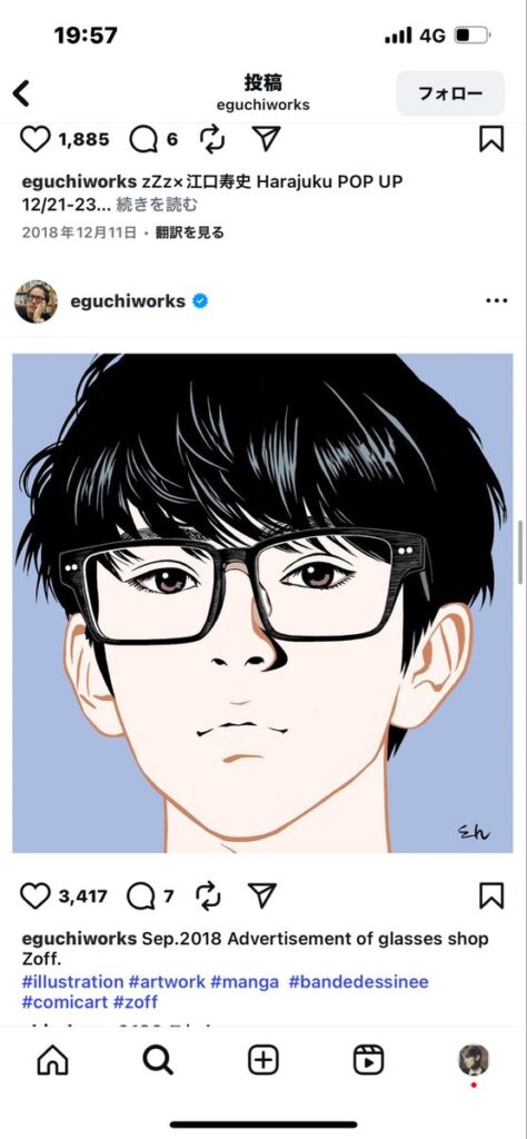 メガネの Zoff (ゾフ) 公式、過去キャンペーン企画で使用された江口寿史氏のイラストの件でお詫び「現在、事実関係を精査しております」