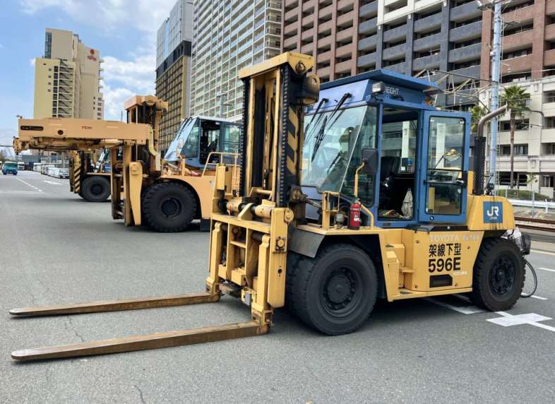 【ヨシ】フォークリフトに大量の枝を積み無免許運転、前方を歩く人が手で枝を抑えながら運ぶ