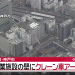 クレーン車のアームが商業施設の壁に突っ込む 神戸市・JR三ノ宮駅前の工事現場
