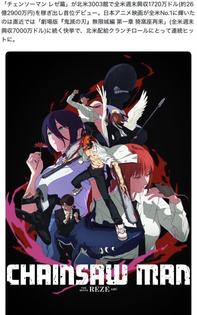【速報】映画「チェンソーマン レゼ篇」、全米首位www