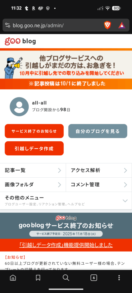 【超速報】goo BLOG アプリ版が終了、新規投稿が停止に。 1: すべて(茨城... -