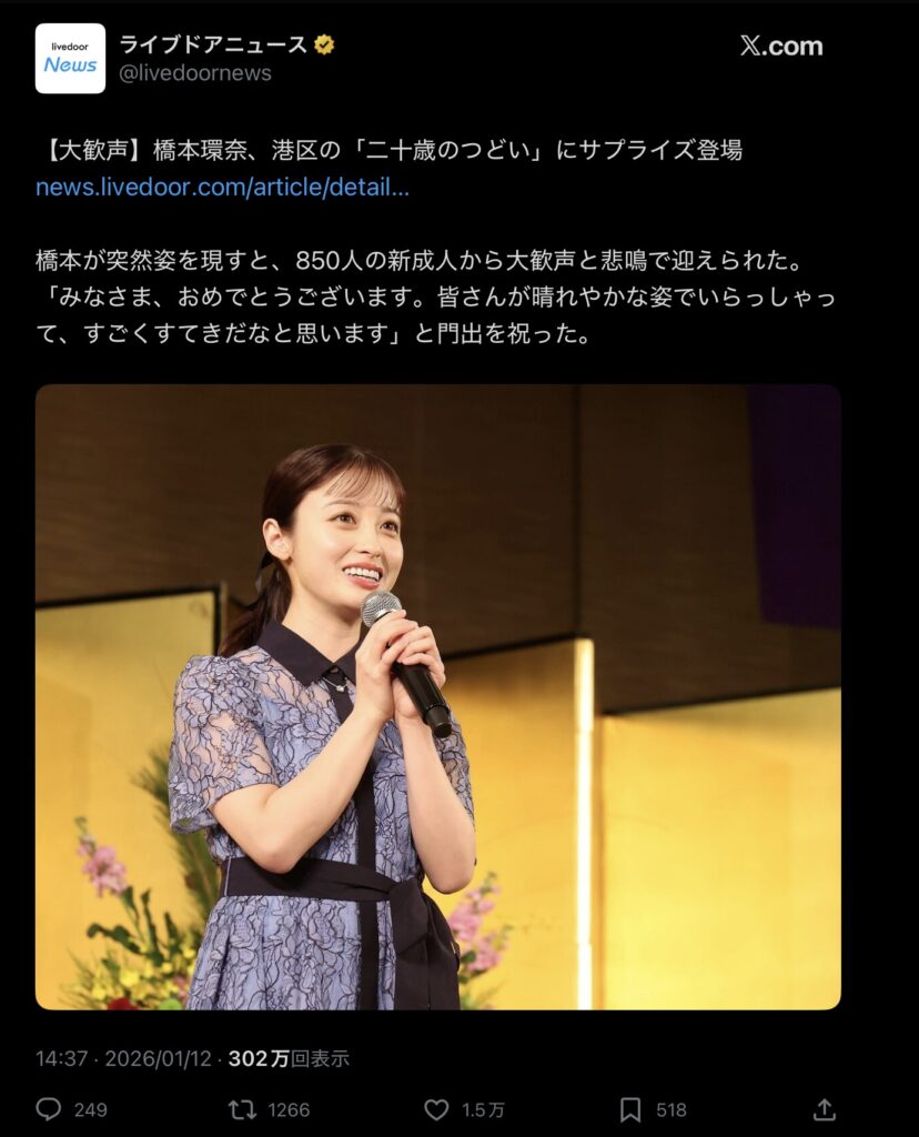 【画像】港区女子・橋本環奈爆誕ww 1: それでも動く名無し 2026/01/13(火) 08:17:3... -