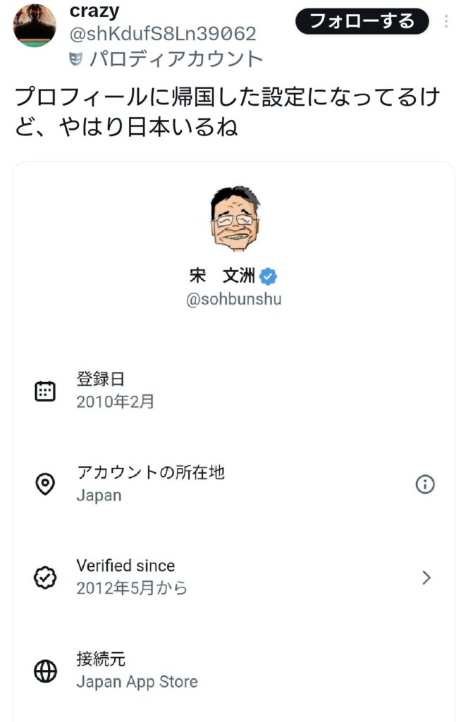 Xで著名の中国人。偽者の可能性 1: バックドロップホールド(東京都) [ニダ] 2025/11... -