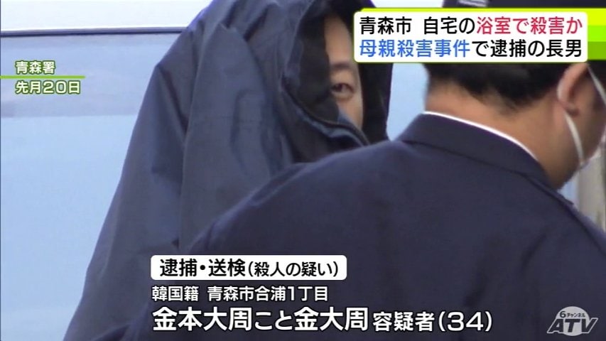 【金本大周こと金大周 】浴室で母親を殺害か… 殺人の疑いで逮捕・送検の無職の34歳の息子 青森市・殺人事件