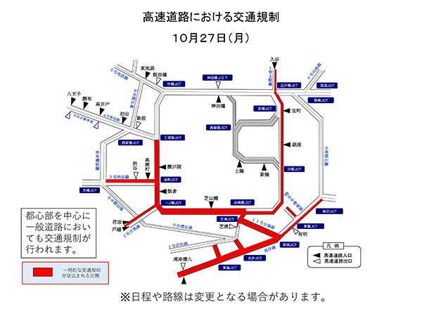 【警視庁】外国要人来日に伴う交通規制のお知らせ 地図(10/27-29 トランプ)