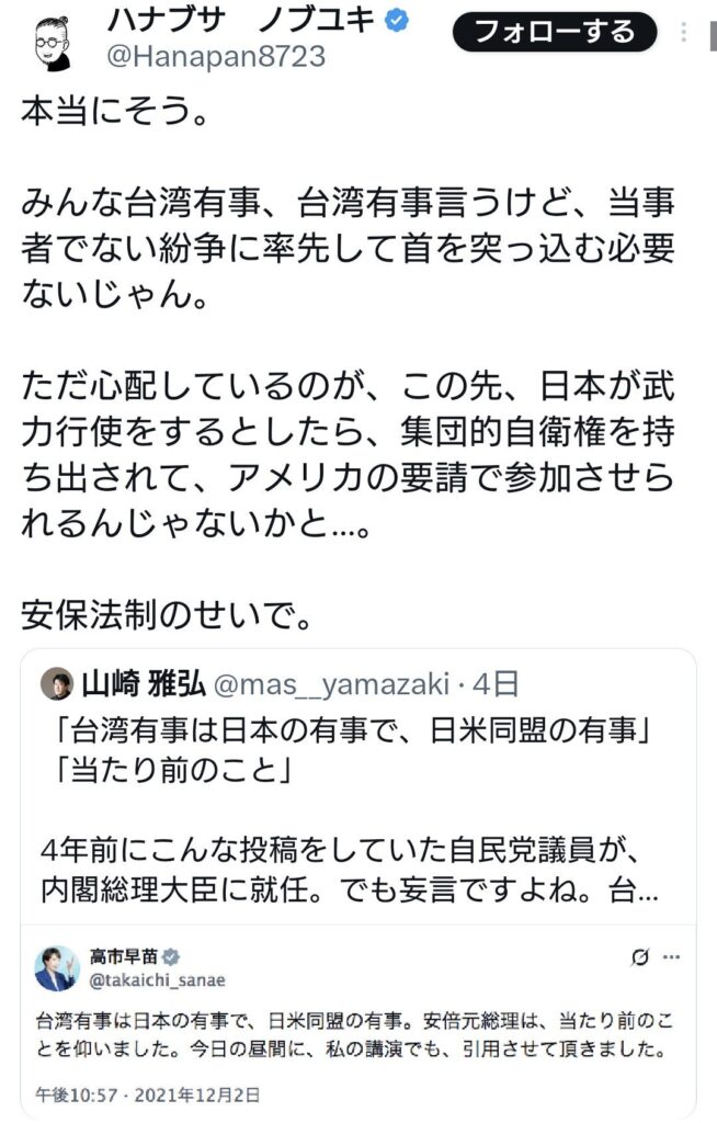 パさん「みんな台湾有事、台湾有事言うけど、当事者でない紛争に率先して首を突っ... -