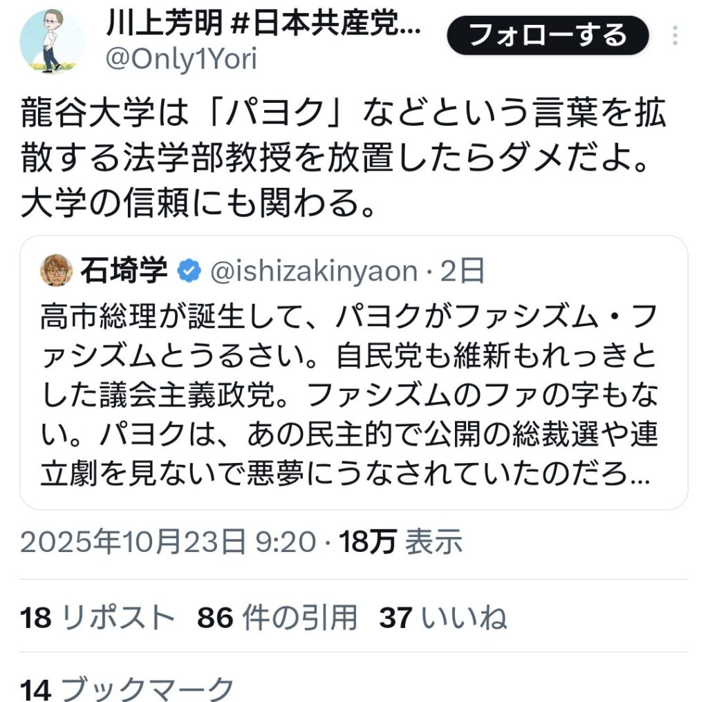 共産党支持者「龍谷大学は「パヨク」などという言葉を拡散する法学部教授を放置し... -