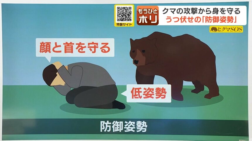 【クマに襲われた時】とにかく低姿勢で我慢 首と顔を守ること