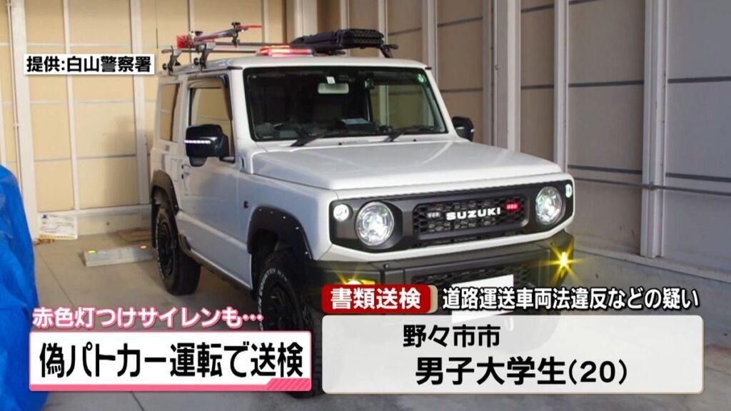 大学生、自分の車に赤色灯を付けサイレンを鳴らすなどして書類送検 「パトカーがかっこいいと思った」