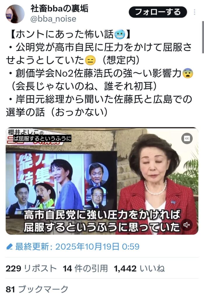 【知ってた定期】公明党が高市自民に圧力をかけて屈服させようとしていた