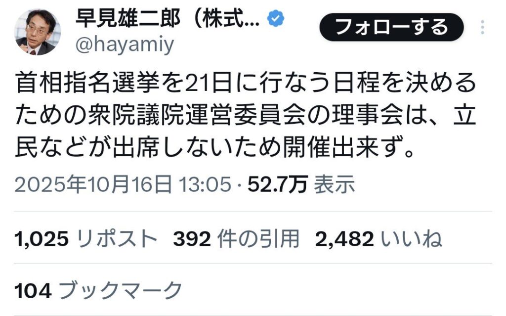 【共産】田村智子委員長「自維協議は危険」 1: 蚤の市 ★ 2025/10/16(木) 19:18:58.... -