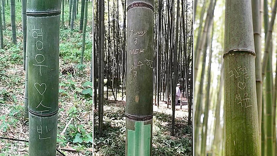 【韓国人として恥ずかしい・国の恥さらしだ】京都嵐山の名所・竹林を台無しにした“ハングルの落書き”