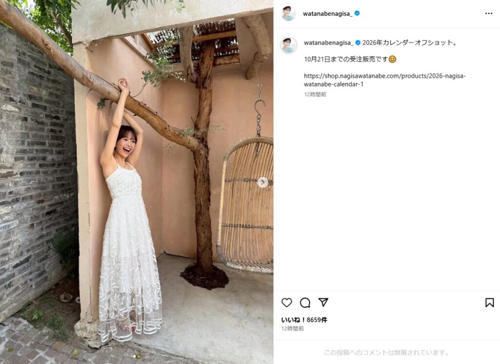 【元フジ渡邊渚】「透け感」白ノースリから美ワキ全開オフショ!有料会員限定1万6500円でカレンダー特典