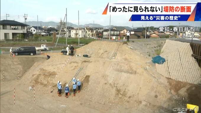 【愛知】スパっと切られた「堤防」の断面⁉ そこには…めったに見られない“かさ上げ”や... -