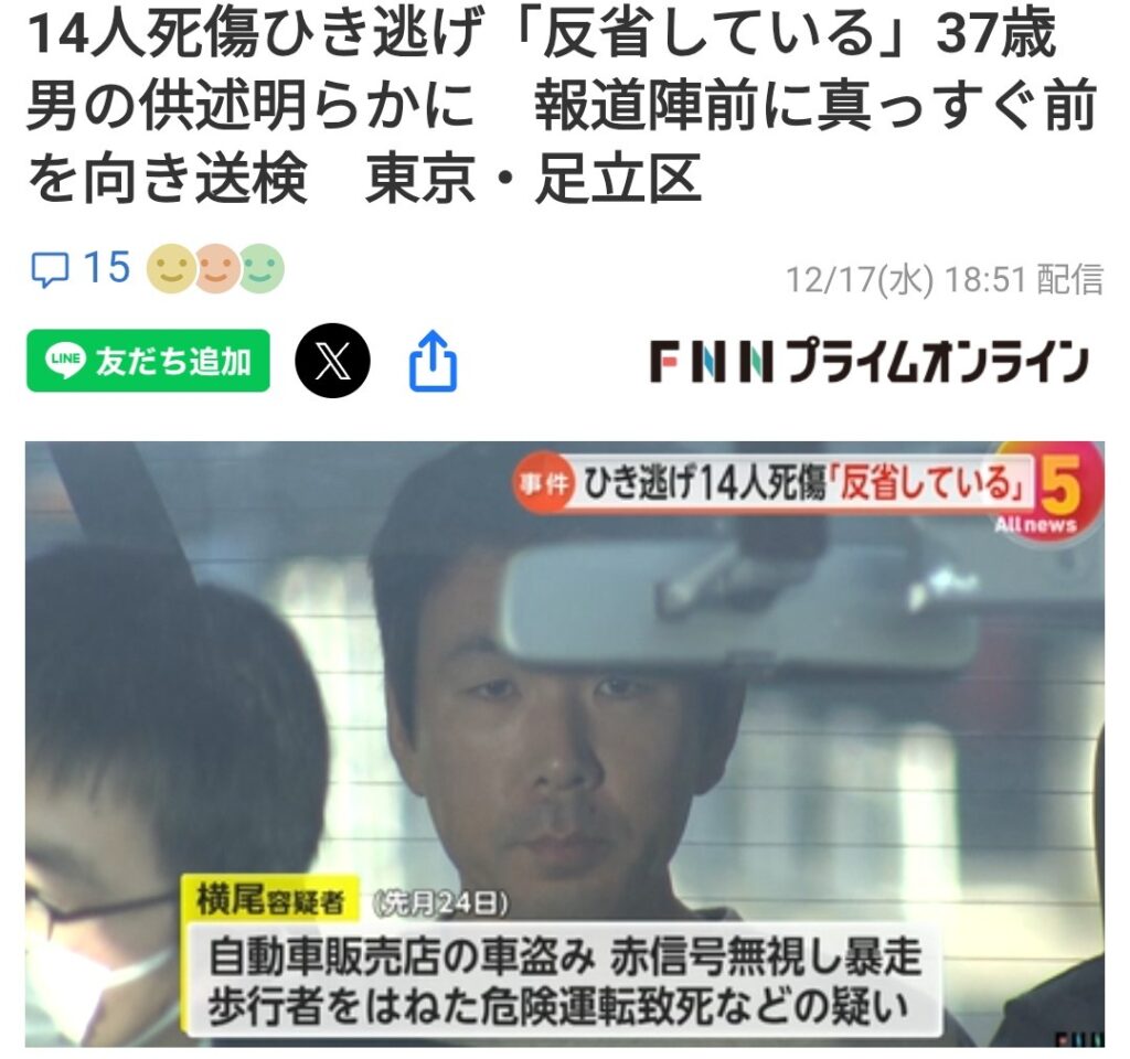 ゆうすけ「14人轢き逃げした。反省している」トヨタ認定中古車のクラウン盗んだ車カ〇の横尾優祐容疑者