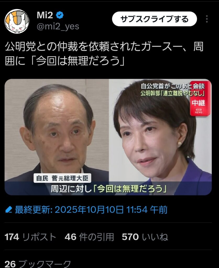 公明党が自民党との連立離脱 1: どどん ★ 2025/10/10(金) 15:40:14.34 ID:TIxQweOb... -