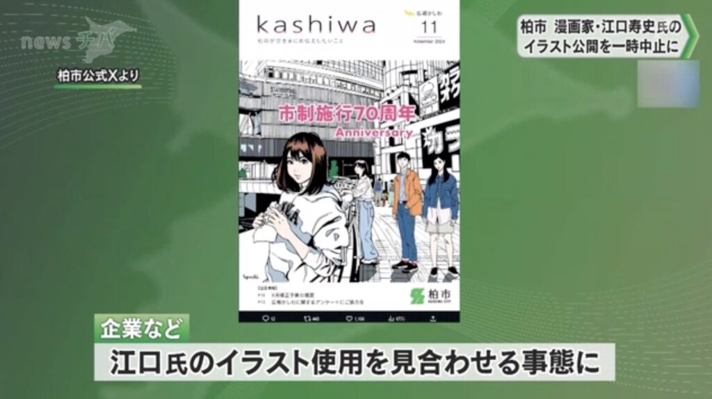 江口寿史氏の描き下ろしイラスト公開中止 千葉・柏市制施行70周年記念 江口氏本人に問題がないか確認のメール送る
