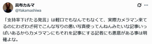 【人気ラッパー】高市支持率下げてやる騒動「実際カメラマン来てるのにわざわざ何でこんな写りの悪い写真使ってんねんみたいな記事いっぱいあるからカメラマンにもそれを記事にする記者にも悪意がある事は明確よな」