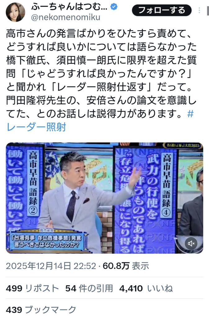 橋下徹氏、「じゃどうすれば良かったんですか?」と聞かれ「レーダー照射仕返す」... -