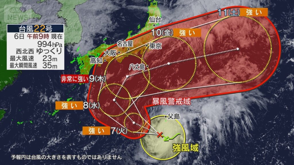 台風22号、急旋回予想で関東水没か