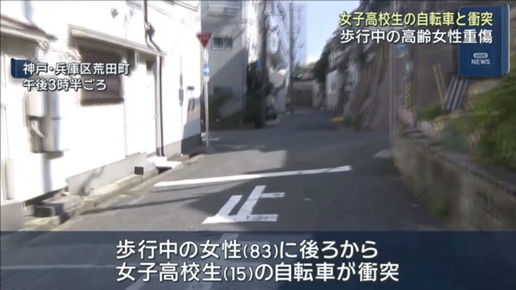 15歳の女子高校生、自転車で83歳の女性に衝突 女性は両手首の骨を折っていて重傷 女子高生が脇見していた可能性 神戸・兵庫区(動画あり)