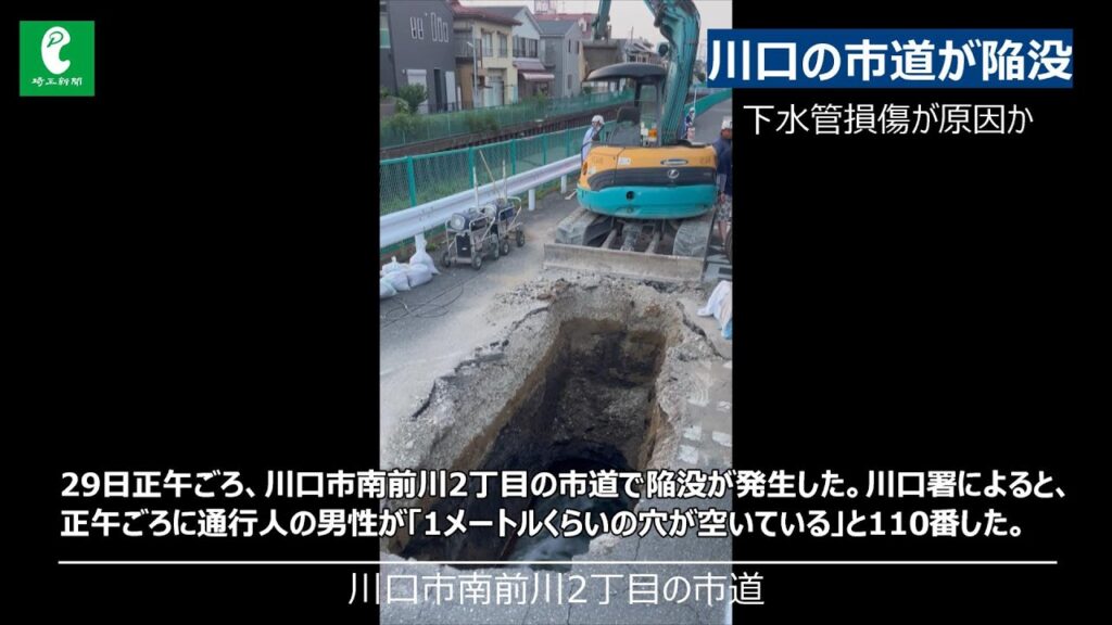 【道路陥没】埼玉県・川口市で「道路に穴が開いている」、直径1m深さ4mで二次... -