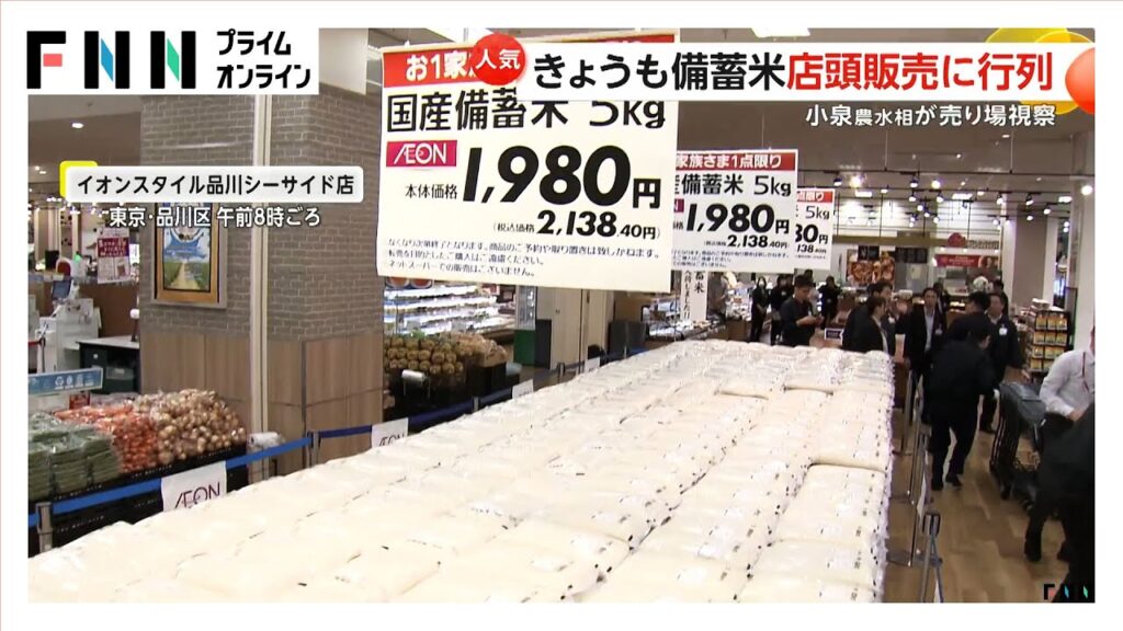 【コメ】イオンで山のように積まれた備蓄米、大勢が店に行列作るも売れ残る コメ価格への影響は?
