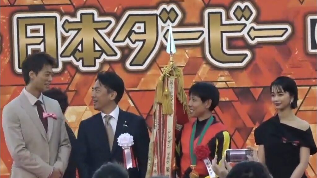 小泉進次郎農相が日本ダービーの表彰式に出席 スタンドから「コメーー!」という声... -