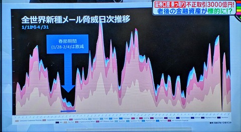 【豆知識】スパムメールは、中国の春節の時期になると激減するそうです