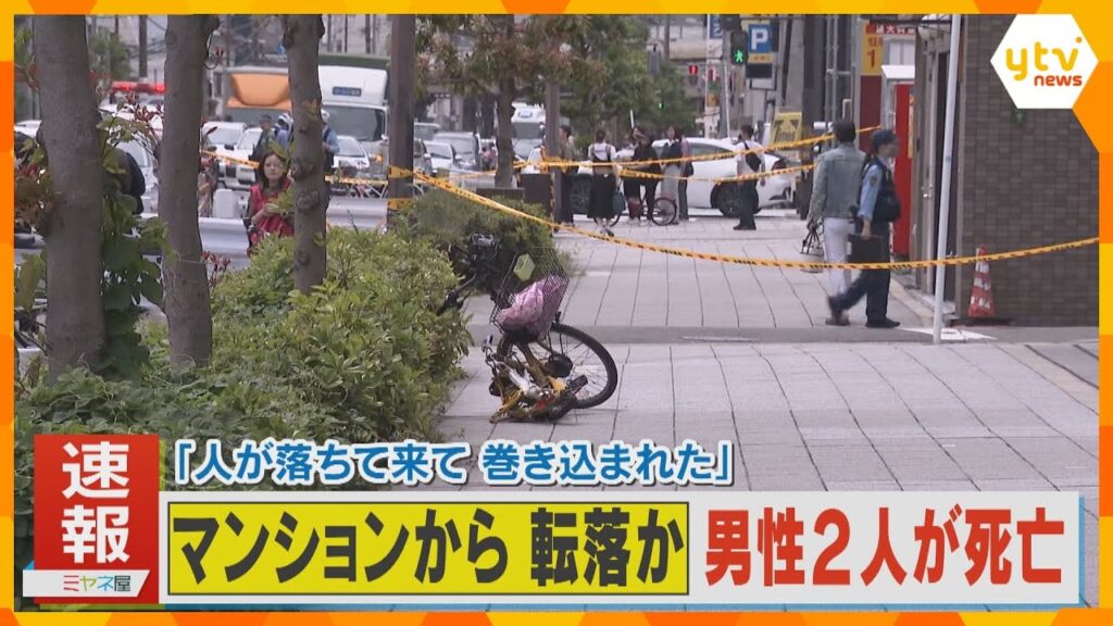 「人が落ちてきた。自転車の人も巻き込まれている」マンションから人転落、路上の人に当たったか 男性2人が死亡 大阪市北区(動画あり)