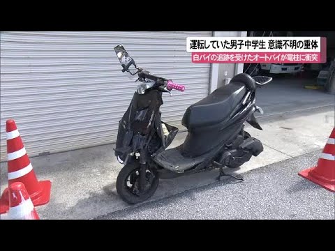 【沖縄】白バイから逃走のオートバイが信号機に衝突 運転の14歳少年が意識不明の重体(動画あり)