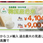 NHK「韓国米はいかがですか?4kg4100円、10kg9000円です」
