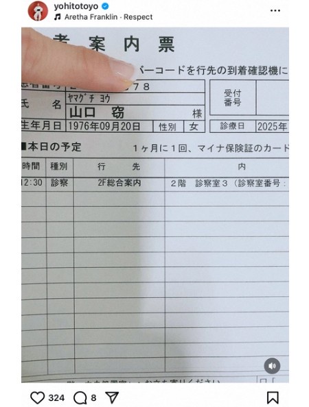 【芸能】一青窈「久しぶりに間違われました」 病院での名前の“誤字”に『窃×→窈で... -