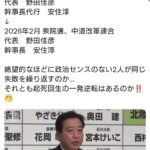 【中道改革連合】野田氏周辺 「党幹部の間にも悲壮感が漂い、雰囲気は最悪だ。 野田佳彦共同代表や斉藤鉄夫共同代表は即日辞任やむなしというムードだ」